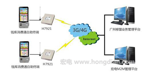 錢庫消費(fèi)自助系統(tǒng)由錢庫消費(fèi)通自助終端機(jī)、H7921 3G路由器和后端管理平臺(tái)三部分組成。其中,消費(fèi)通自助終端機(jī)包括控制器、播放終端和顯示終端組成,用于客戶直接可操作業(yè)務(wù)的機(jī)器終端。可實(shí)現(xiàn)消費(fèi)信息查詢、優(yōu)惠券打印等業(yè)務(wù)辦理。宏電H7921路由器用于構(gòu)建3G無線聯(lián)網(wǎng)系統(tǒng),用于實(shí)現(xiàn)營(yíng)銷廣告,消費(fèi)信息,消費(fèi)業(yè)務(wù)自助辦理等數(shù)據(jù)交互服務(wù)。