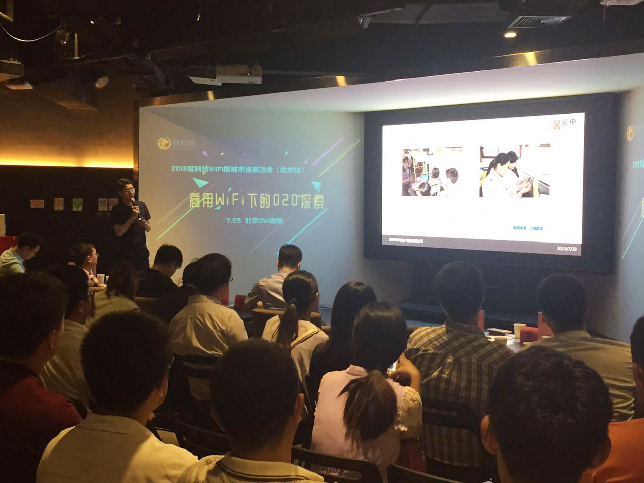 7月29日下午兩點(diǎn),2015猛科技WiFi圈城市巡展沙龍(北京站)在北京3W咖啡館成功舉辦,本次會(huì)議主題為“商用WiFi下的O2O探討”,吸引了200多名來(lái)自商用WiFi領(lǐng)域的設(shè)備商、運(yùn)營(yíng)商、投資商和專業(yè)人士參與。活動(dòng)主辦方邀請(qǐng)了圈內(nèi)諸如京東電商云、宏電股份、萬(wàn)商維盟、極路由、百度WiFi聯(lián)盟等商業(yè)WiFi領(lǐng)域上下游具有代表型的企業(yè)高管作為演講分享嘉賓。