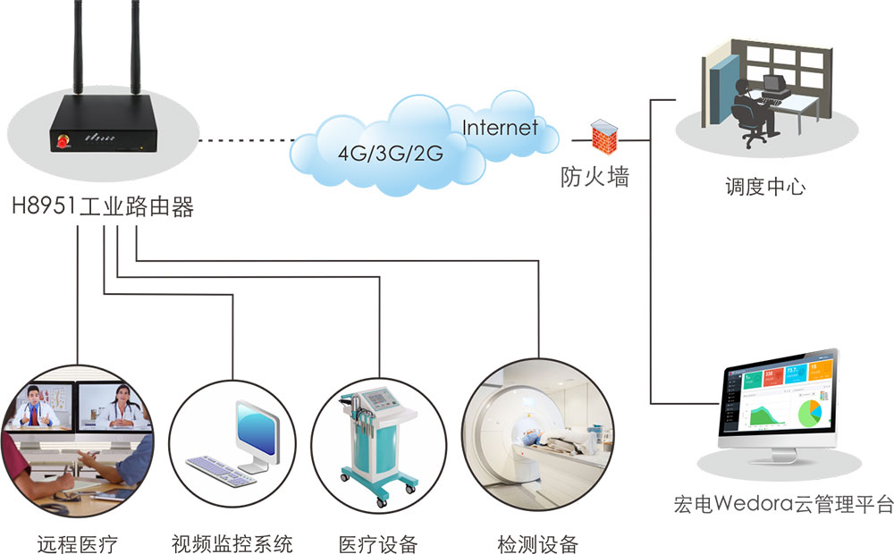為相應(yīng)國家號召,解決傳統(tǒng)醫(yī)療行業(yè)存在的問題,宏電某客戶開發(fā)了智能醫(yī)療系統(tǒng),該系統(tǒng)可以應(yīng)用在醫(yī)院所有需要出報告的科室,通過宏電智能通信終端——H8951工業(yè)路由器,將所有影像膠片及報告以電子版的形式儲存在云端,來替代傳統(tǒng)影像膠片及紙質(zhì)報告,為用戶建立一個云端移動電子健康檔案庫,用戶可以在任何時間任何地點通過各種電子設(shè)備查看自己的檢查報告,從而實現(xiàn)信息化、無紙化醫(yī)院,真正做到移動健康。