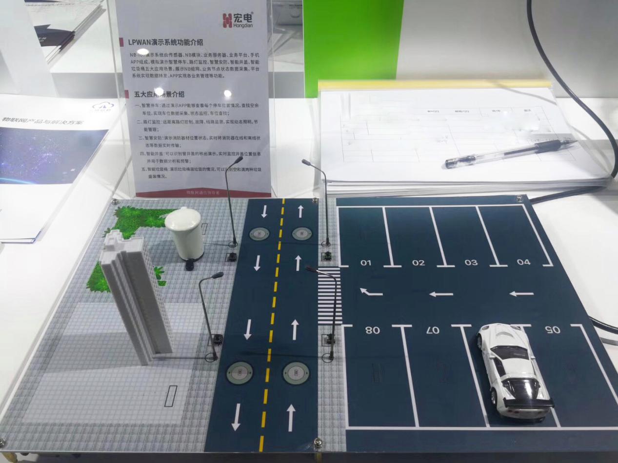 現場觀眾對宏電展示的LPWAN演示系統表示極大的興趣,這款演示系統主要由傳感器、NB-IoT低功耗終端、LPWAN演示平臺組成,基于NB-IoT通信技術下演示智慧停車、路燈監控、智慧安防、智能井蓋、智能垃圾桶五大典型應用場景,展示NB組網、業務節點狀態數據采集、數據傳輸、平臺遠程控制實現各業務管理等功能,體驗業務流程時,無需下載APP,可直接在宏電微信小程序上體驗,方便快捷。
