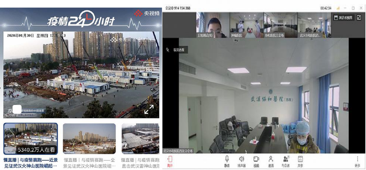 中國電信與央視針對此次疫情特別推出的《疫情二十四小時》節目直播,意在讓密切關注武漢疫情的全國乃至全球人民,能在第一時間獲知火神山醫院的建設進度。短短幾天,火神山、雷神山的近景、遠景四大直播間的同時在線人數就超過了8000萬。