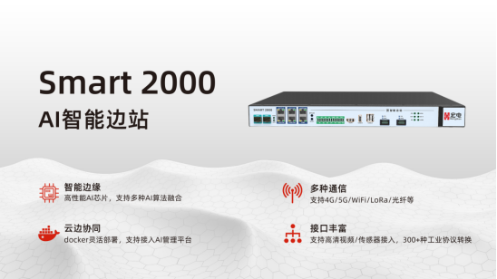 作為深圳宏電自主研發的一款功能強大、性能突出的邊緣計算智能終端產品,Smart2000 AI智能邊站具有強大的設備接入能力、邊緣計算能力、安全防護能力等。該產品可對實時視頻進行智能化分析,支持接入多路普通攝像機,通過AI智能邊站強大的“智慧大腦”處理后,即可展示出智能化的結果。例如人臉識別、車牌識別、安全帽識別、工服識別、抽煙識別、行為分析、周界防范等。 同時其支持云邊協同機制,支持docker容器功能,滿足項目上一鍵部署的需求,并且可以遠程更新算法模型。目前已廣泛用于電網配電房、燃氣門站、工地、車間、泛安防等需要進行視頻內容識別的場景,滿足對AI智能化的應用需求。