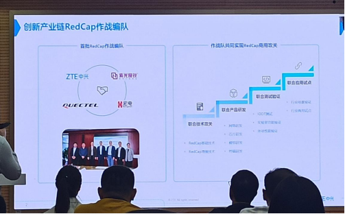 今年3月,在中國移動召開的“移動通信子鏈”第一次會議上,成立了“移動通信子鏈”RedCap子課題,中國移動攜手產業合作伙伴在會上發布了首批兩支RedCap作戰編隊。宏電股份作為首批RedCap作戰編隊成員攜手產業合作伙伴開展貫通網絡、芯片、模組、終端、應用等全鏈條的RedCap商用攻關行動。