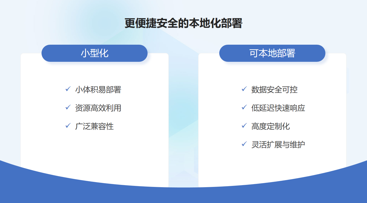 凝思大模型可從60億到130億參數根據不同服務器配置,適用于各種尺寸和性能級別的硬件平臺,占用存儲空間、系統運行占用資源小,極大節省了部署成本。另外,與傳統模型數據上云的方式相比,凝思大模型更注重數據安全與隱私保護,凝思大模型可部署在企業內部服務器,還可根據企業需求進行個性化配置和優化,輕松集成到現有IT架構中,確保敏感信息不離開企業環境。