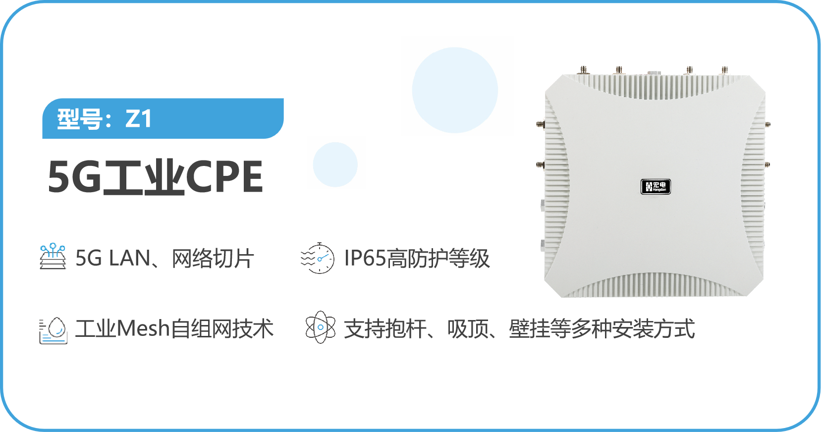 宏電5G工業智能網關/CPE具備5G頻段全、高精度授時、5G LAN等特性,授時精度遠超行業內標準,可為電力客戶提供5G超高速傳輸網絡,實現無線傳輸承載差動保護控制以及空口授時,代替現有傳輸方案。