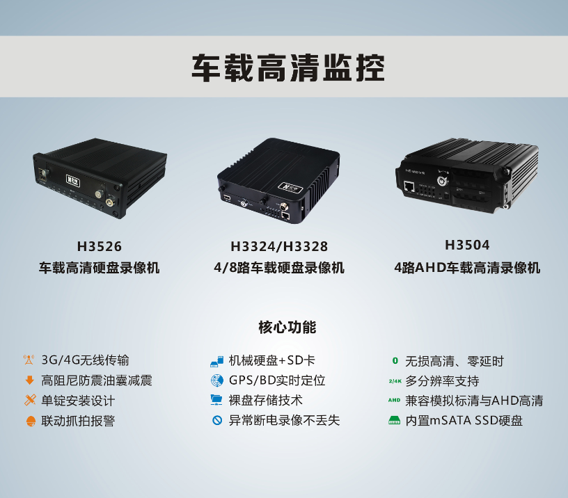 H3318A具備的車載視頻監控功能,能夠將車行駛過程中的錄像高清無損的記錄下來,同時還能支持定時/手動抓拍、事件/聯動報警、疲勞駕駛報警、偏離路線報警等功能。