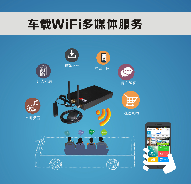車載WiFi是宏電公司結合4G移動通信與市場需求推出的車載多媒體終端,它可以讓乘客在乘車時享受免費WiFi上網服務以及本地存儲的豐富的視頻、音樂、游戲等多媒體資訊節目。同時它還可以與云廣告平臺結合,實現基于LBS的精準廣告推送、用戶行為統計分析、廣告效果分析等功能。目前,宏電已經先后在國內60多個城市成功實施公交WiFi項目,覆蓋幾十萬輛公交車。