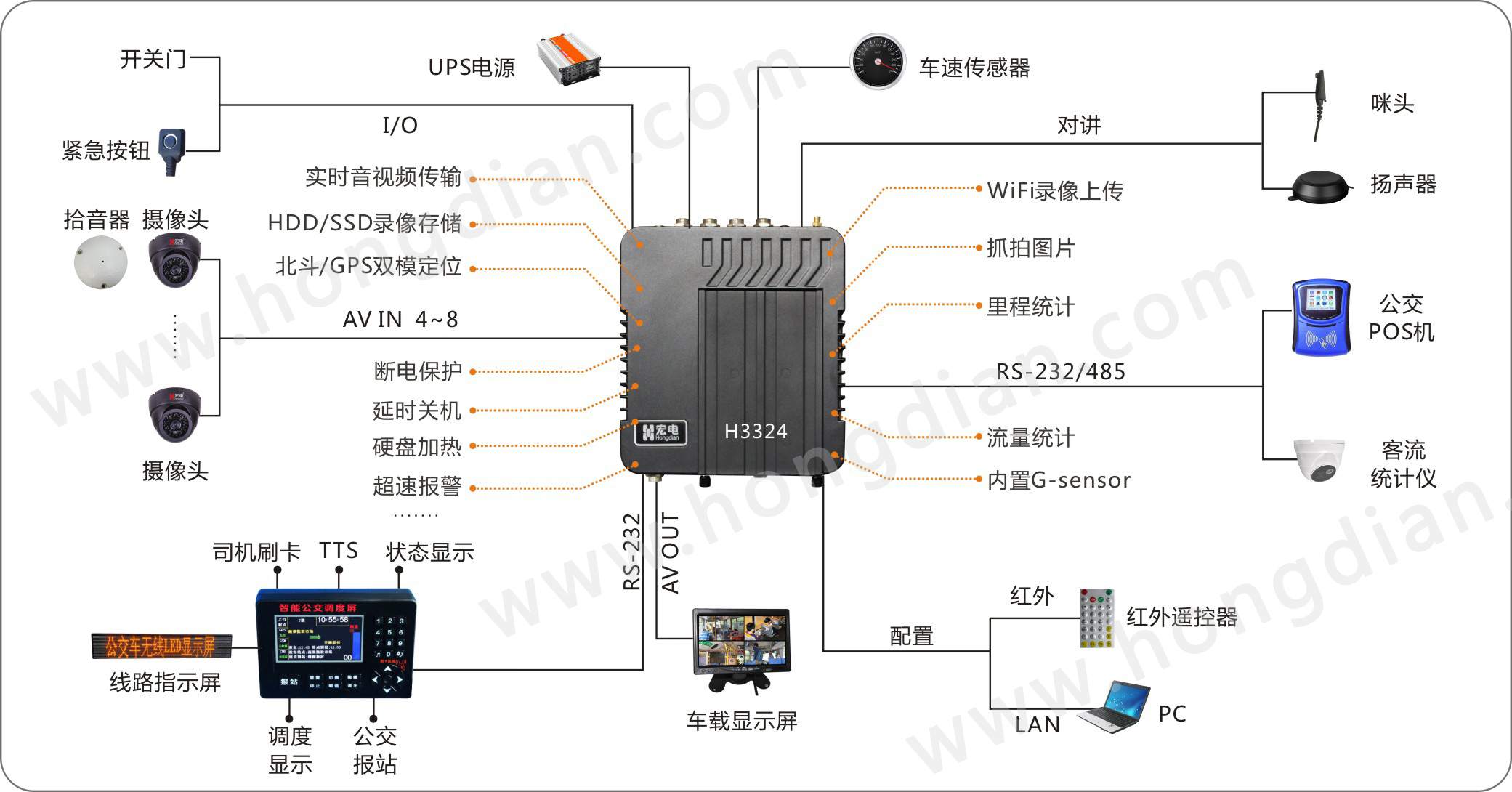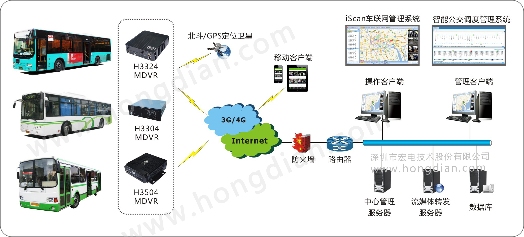 在互聯網+思想的指導下,深圳宏電推出城市公交車輛無線監控調系統。該系統能夠對公交車輛進行實時視頻監控,實現公交調度、數據采集,為交通事故和違法事件取證提供有效依據,規范公交運輸管理。