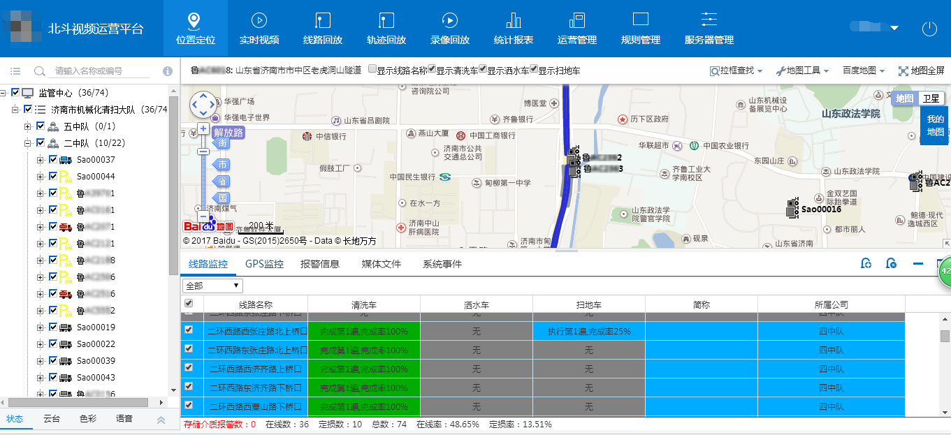 濟南環衛部門十分重視環衛作業的智能化管理,雖然加裝GPS定位裝置能夠查詢車輛的作業軌跡,但是部分車輛出現漏掃,或是清掃不干凈等情況,難以及時發現。為了避免環衛作業以上問題出現,濟南機械化清掃大隊采用宏電H3318A四合一車載視頻監控終端,并定制個性化系統監控管理平臺,通過平臺對作業線路和作業效果全程監督,從而實現對環衛作業的實時把控。
