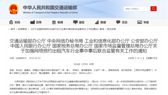 為了加強(qiáng)網(wǎng)約車的安全監(jiān)管,國家相繼發(fā)布了多臺政策和舉措,逐漸加大監(jiān)管力度,堅(jiān)決不讓“互聯(lián)網(wǎng)+綠色出行”成為法外之地。2018年6月1日,《出租汽車服務(wù)質(zhì)量信譽(yù)考核辦法》頒布實(shí)施,將網(wǎng)約車納入出租汽車,統(tǒng)一監(jiān)管;2018年6月5日,《關(guān)于加強(qiáng)網(wǎng)絡(luò)預(yù)約出租汽車行業(yè)事中事后聯(lián)合監(jiān)管有關(guān)工作的通知》頒布實(shí)施,對網(wǎng)約車平臺公司從企業(yè)管理、信息數(shù)據(jù)、安全運(yùn)營、運(yùn)營服務(wù)、社會責(zé)任和加分項(xiàng)目等6類共19個項(xiàng)目設(shè)計(jì)相應(yīng)考核指標(biāo)。