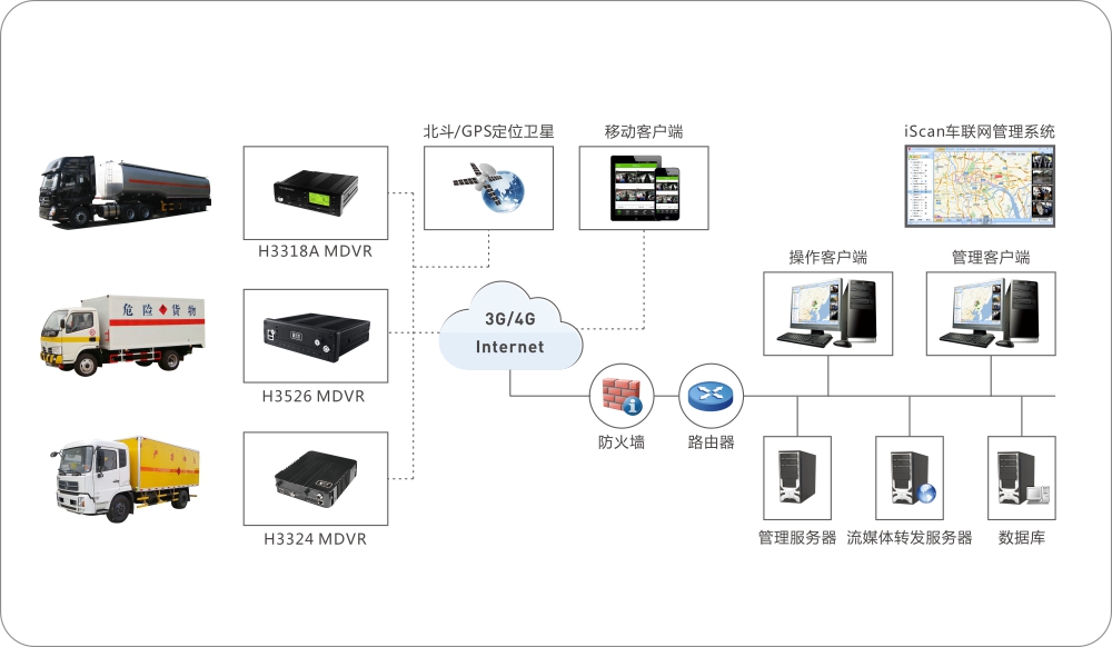 宏電危險品運輸車輛主動安全智能監(jiān)管系統(tǒng)采用動態(tài)視頻監(jiān)控技術、4G無線通信傳輸技術、惡劣環(huán)境大容量數(shù)據(jù)存儲技術、GIS可視化操作技術,集成最新的DSM疲勞駕駛監(jiān)測及主動安全防御(ADAS)技術,形成一套對營運車輛進行精確監(jiān)控的綜合服務管理平臺。系統(tǒng)能夠幫助危險品供應企業(yè)實時、有效監(jiān)管運輸人員行為,有效減少交通事故和油氣偷盜行為發(fā)生及時避免危險品泄漏事故發(fā)生,一旦發(fā)生時能夠提供有力的核查依據(jù)。