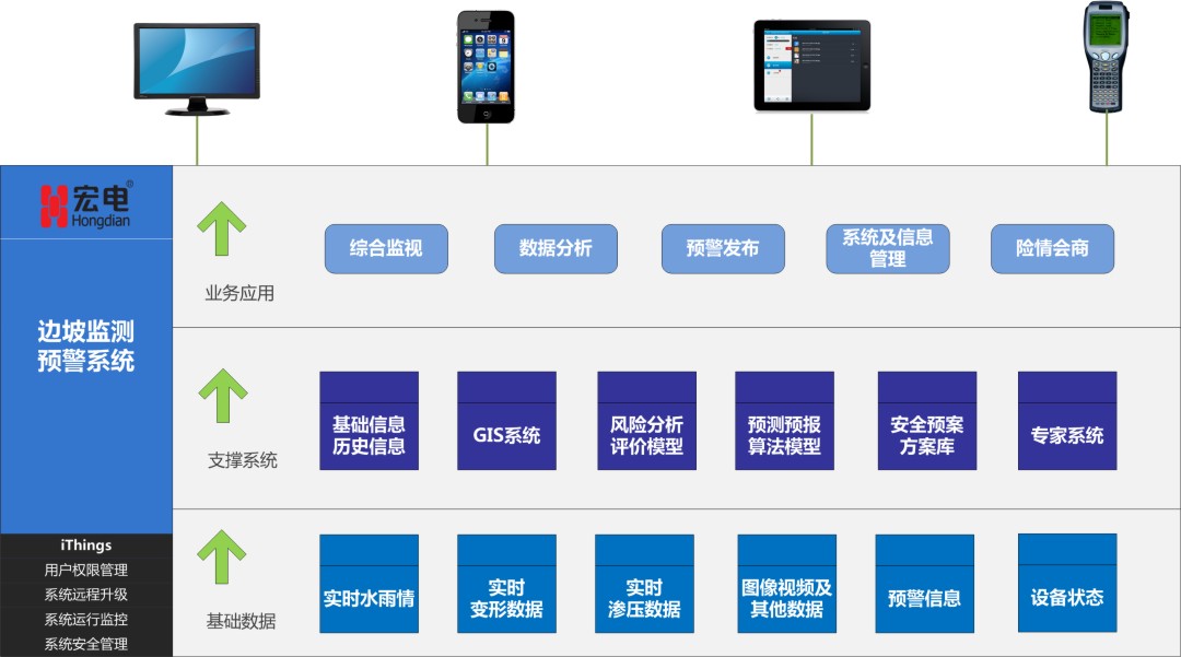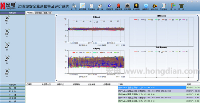 宏電邊滑坡安全監測預警系統由數據采集監測子系統、專家分析及預測預報子系統、風險分析評價子系統、專家在線診治系統及預警預報模塊等組成,可實現全天候不間斷的實時在線監測。