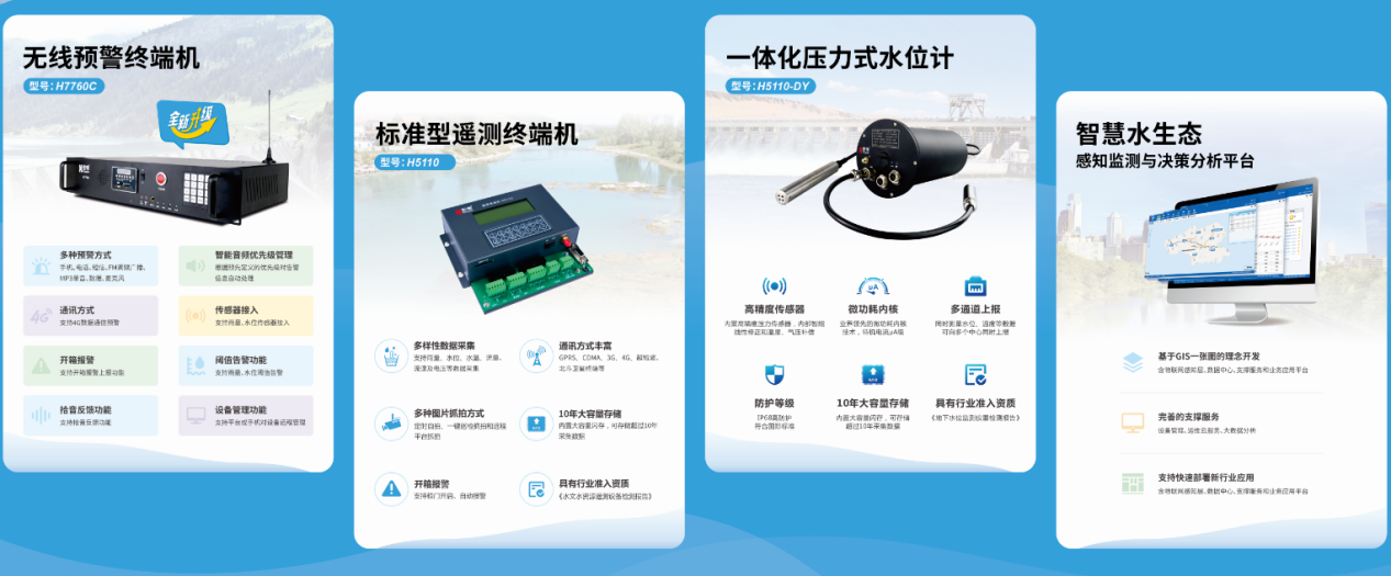 以“感.端.云.應(yīng)用”全棧布局智慧水生態(tài)業(yè)務(wù),提供一系列水利水務(wù)關(guān)鍵產(chǎn)品