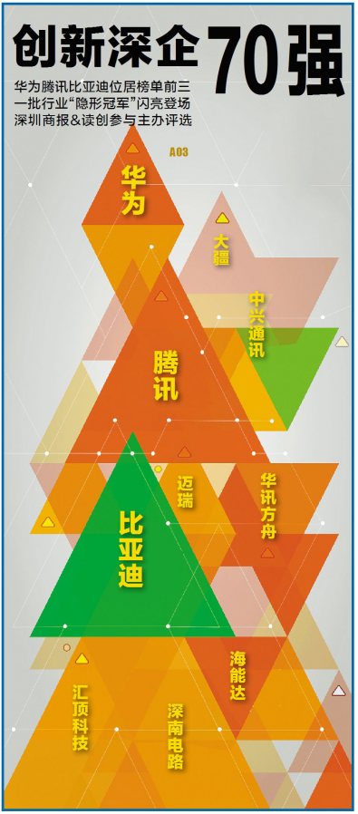 在深圳市科技創(chuàng)新委員會指導(dǎo)下,時代商家雜志社和深圳商報&讀創(chuàng),以及深圳市時代新經(jīng)濟發(fā)展研究院今年3月共同發(fā)起“深圳創(chuàng)新企業(yè)70強”評選活動。組委會表示,深圳創(chuàng)新企業(yè)是深圳高新技術(shù)產(chǎn)業(yè)的脊梁,是深圳高質(zhì)量發(fā)展的代名詞,通過評選不僅要表彰銳意進取的企業(yè),也要揭示深圳的創(chuàng)新密碼,總結(jié)深圳的創(chuàng)新基因。