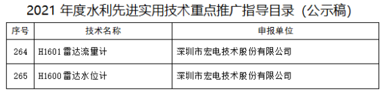 日前,水利部科技推廣中心公布了《2021年水利先進(jìn)實(shí)用技術(shù)重點(diǎn)推廣指導(dǎo)目錄》,包括中國水利水電科學(xué)研究院、河海大學(xué)等單位在內(nèi)的308項(xiàng)先進(jìn)實(shí)用技術(shù)入選,宏電股份自主研發(fā)的智能感知監(jiān)測產(chǎn)品H1601雷達(dá)流量計(jì)和H1600雷達(dá)水位計(jì)憑借“科學(xué)的技術(shù)原理、先進(jìn)有效的技術(shù)性能指標(biāo)、合理的成本價(jià)格和良好的應(yīng)用效益”等優(yōu)勢位列其中。
