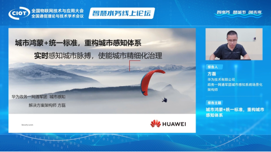 華為技術(shù)有限公司政務(wù)一網(wǎng)通軍團(tuán)城市感知系統(tǒng)場(chǎng)景化架構(gòu)師方磊先生發(fā)表了《城市鴻蒙+統(tǒng)一標(biāo)準(zhǔn),重構(gòu)城市感知體系》主題演講,介紹了城市感知的發(fā)展趨勢(shì)、挑戰(zhàn)和機(jī)遇,以及華為的城市鴻蒙物聯(lián)感知解決方案在智慧水務(wù)領(lǐng)域中的應(yīng)用,打造具備“可視、可知、可控、可預(yù)測(cè)”能力的智慧水務(wù)。