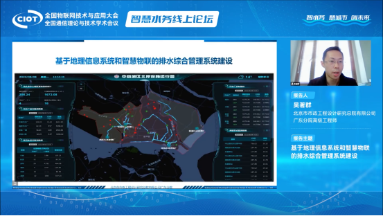 北京市市政工程設(shè)計(jì)研究總院有限公司廣東分院高級(jí)工程師吳著群先生發(fā)表了《基于地理信息系統(tǒng)和智慧物聯(lián)的排水綜合管理系統(tǒng)建設(shè)》主題演講,以汕頭市建設(shè)的排水在線監(jiān)測(cè)系統(tǒng)為例,深入淺出地講解了如何運(yùn)用信息化手段解決城市排水系統(tǒng)管理中面臨的問題。