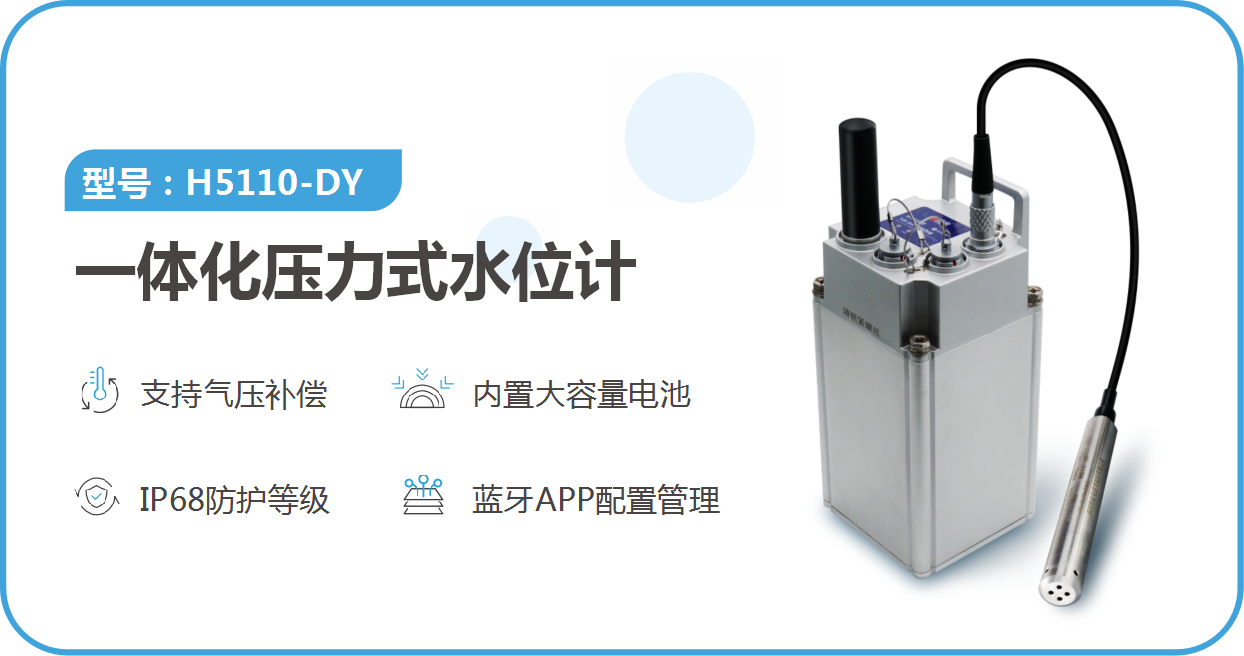 H5110-DY?體化壓力式水位計是?款智能遙測數字終端設備,滿足水利水情行業遙測對低功耗、防水以及大容量數據存儲的要求。產品以高性能低功耗微控制器為核心,具有多個傳感器接口和多通道上報功能,集數據采集、存儲、通信和遠程管理等功能于?體。