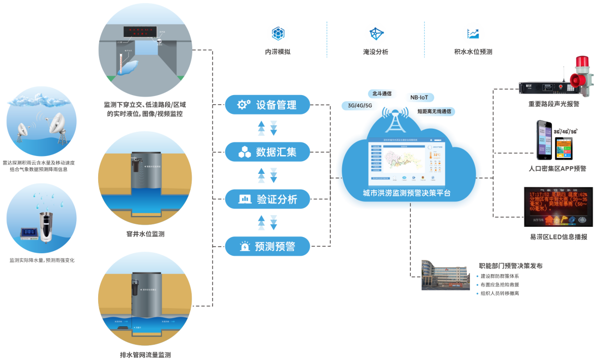 在城市化進程不斷推進和極端降雨事件頻發的雙重影響下,城市“看海”現象屢屢發生。以往的傳統方法如整治河道、改造地下管網、增加排澇設施等已經不足以很好地解決現代城市內澇問題,隨著物聯網技術的快速發展和深入應用,使得以信息化的手段實現城市內澇的監測預警與模擬預測成為可能,為有效疏導和減少城市內澇災害損失提供可靠的技術保障。