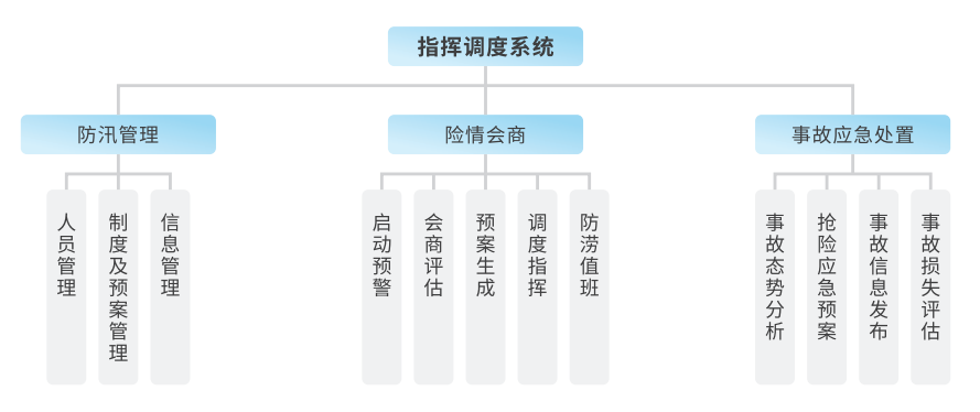 指揮調(diào)度系統(tǒng)軟件是基于自動(dòng)測控系統(tǒng)平臺(tái)之上建立的信息整合系統(tǒng),可實(shí)現(xiàn)排水設(shè)施動(dòng)態(tài)信息的中央監(jiān)控、聯(lián)合調(diào)度等,是具備高度智能化指揮調(diào)度功能的決策支持平臺(tái)。整個(gè)軟件系統(tǒng)的設(shè)計(jì)基于一張圖理念,在電子地圖上標(biāo)注地下管線的埋深、走向、材質(zhì)、管徑,提供豐富的管線瀏覽與分析工具,輔助用戶進(jìn)行城市排水管網(wǎng)數(shù)據(jù)資料管理與查詢應(yīng)用、排水設(shè)施巡檢養(yǎng)護(hù)管理、閘門泵站實(shí)時(shí)監(jiān)控及防汛應(yīng)急指揮。指揮調(diào)度子系統(tǒng)主要包括防汛管理、險(xiǎn)情會(huì)商、事故應(yīng)急處置、移動(dòng)端APP四大部分。