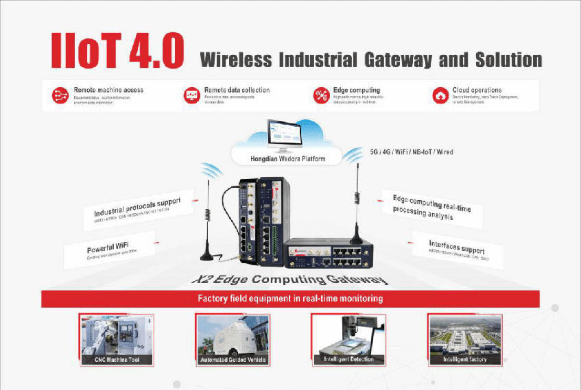 At present, Hongdian industrial intelligent IoT gateway is mainly used for CNC machine tools, automaticed guided vehicles, industrial robots as the representative of the factory site real-time monitoring of on-site equipment, as well as fire facilities and factory video surveillance as the representative of the factory maintenance.