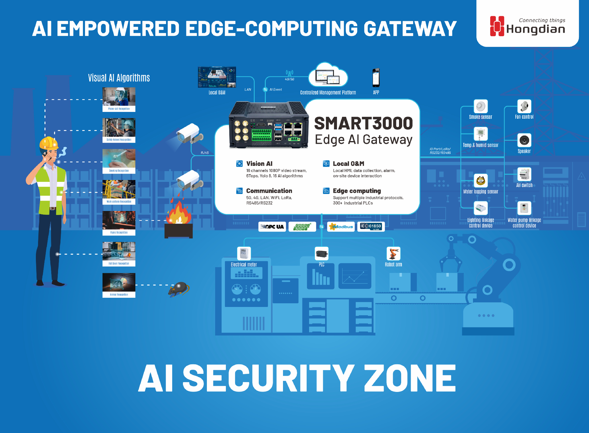 In terms of industrial AI, Hongdian has a rich accumulation, and has completed a variety of industry algorithms such as helmet, uniform, smoking, flame, smoke, water level, area intrusion, rat identification, and established its own algorithm library. It has a fully automated labeling, training, deployment integration platform, which opens up a whole set of links for data labeling, training, deployment, optimization, testing, and delivery, and meets the requirements of fragmentation of AI intelligent analysis scenarios and rapid delivery. Smart3000 edge AI gateway is a highly intelligent and highly available intelligent gateway independently developed by Hongdian, which integrates control, edge analytics, communication, AI capability in one, with powerful device access capability, edge computing capability, security protection capability, has been widely used in power distribution rooms, gas stations, bright kitchen, chain smart stores and other scenarios. Empowering industry applications through AI and 5G to accelerate the transformation of production, life and social governance in a digital and intelligent way.