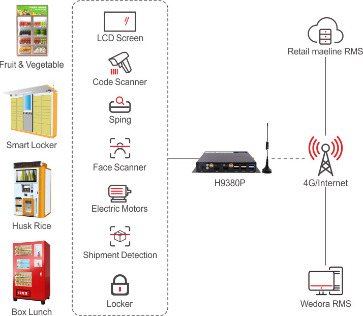 Hongdian has launched an AI intelligent industrial computer H9380P based on the integration of IoT technology and AI technology, which provides hardware support such as face brushing payment and machine vision applications. It supports multi light source face recognition, multi camera visual recognition, runs naked eye 3D, and a variety of AI application scenarios. It can also adapt to all kinds of vending machine peripheral interface, provide a variety of protocol docking and support access to mainstream 3D camera manufacturers on the market. At the same time, Acer adopts off-line automatic connection technology for network disconnection detection, supports intelligent dialing, realizes self detection and self maintenance of 4G/5G network links, supports independent dialing process guard and dialing optimization, ensures high-speed and stable real-time communication, and solves problems such as slow network speed, frequent network disconnection due to large traffic, unstable operation speed of dual card, etc. In the center, the Wedora RMS Platform is provided to support the real-time remote monitoring and management of H9380P and ensure the stable operation of the system. The system provides perfect intelligent and reliable upgrade solutions for new retail.
