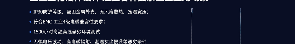 IP30防塵、EMC3級或4級標(biāo)準(zhǔn)、100-240V寬壓、無風(fēng)扇散熱、抗跌防震 |