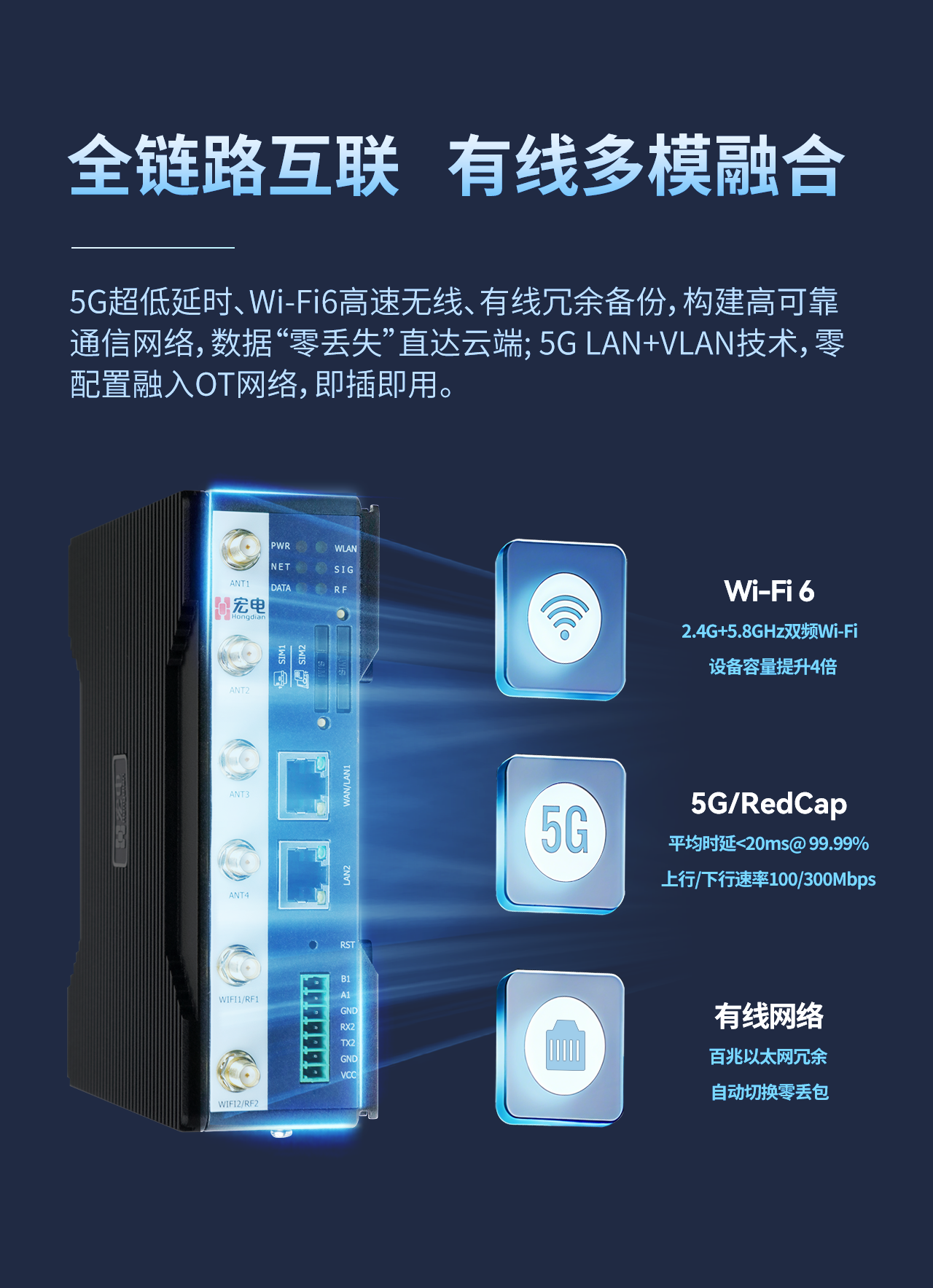 | 天線 | 4*4G/5G、3*WiFi、1*GPS/BD (N型天線接口) |