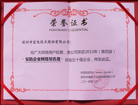2014年3月13日,中國安防網第四屆“網絡知名度”百強評選頒獎典禮暨行業高峰論壇在深圳華強集團2號樓7樓發布大廳隆重舉行。