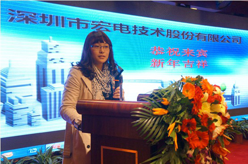 宏電市場部張經理在做主題演講