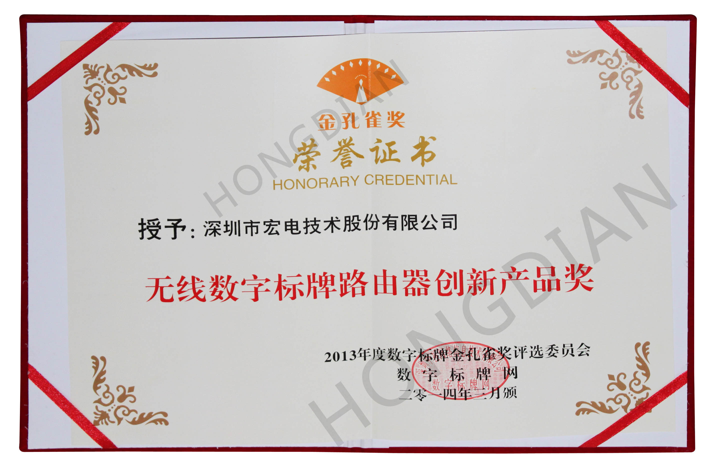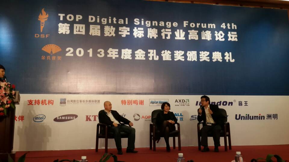 2014年3月13日,數(shù)字標牌行業(yè)年度盛宴——第四屆數(shù)字標牌行業(yè)高峰論壇暨2013年度金孔雀獎頒獎盛典在深圳圣廷苑酒店隆重舉行,吸引了數(shù)字標牌、廣告機、自助終端行業(yè)內資深專家、企業(yè)高管和業(yè)內人士200多人參會。作為國內M2M無線傳輸領航企業(yè)和領航的智能無線數(shù)字標牌方案提供商,深圳市宏電技術股份有限公司受邀參加了此次盛會。在2013年度金孔雀獎頒獎盛典上,宏電作為一家無線通信解決方案提供商榮獲“2013年度無線數(shù)字標牌路由器創(chuàng)新產品獎”這一殊榮。在數(shù)字標牌高峰論壇上,宏電公司高層施總作為特邀嘉賓就 “移動時代下數(shù)字標牌發(fā)展趨勢”主題與業(yè)界精英展開高端對話。