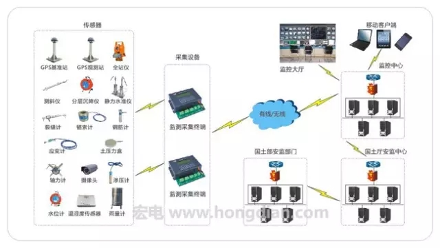 宏電邊滑坡安全監測預警系統由數據采集監測子系統、專家分析及預測預報子系統、風險分析評價子系統、專家在線診治系統及預警預報模塊等組成,可實現全天候不間斷的實時在線監測。