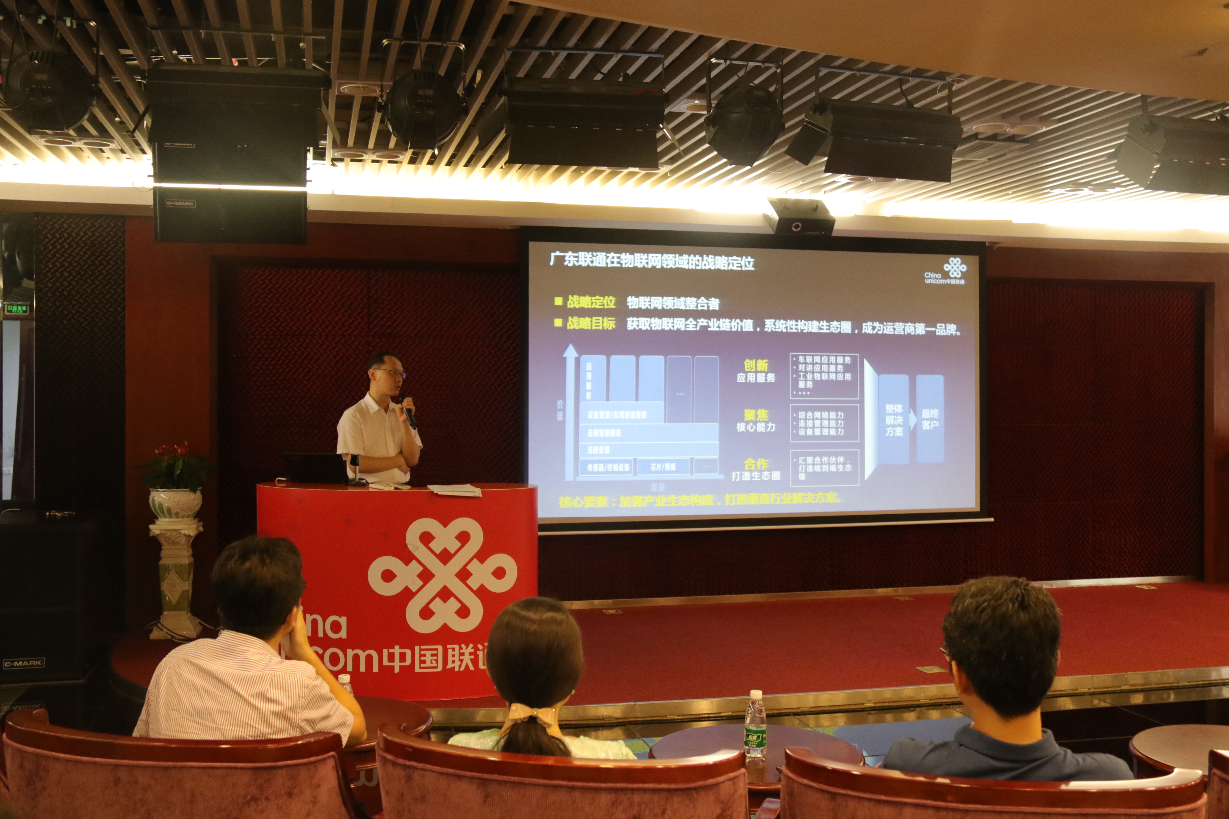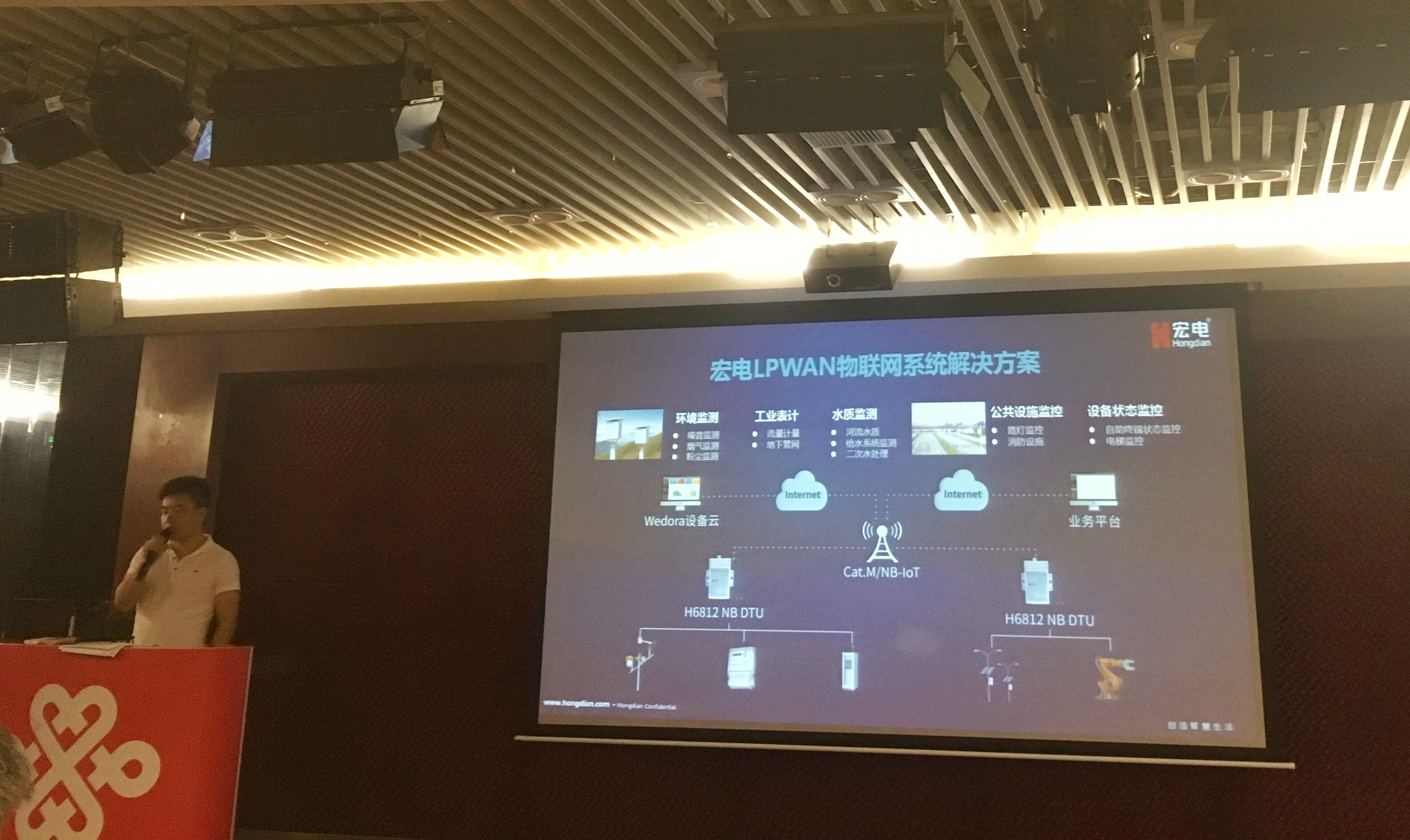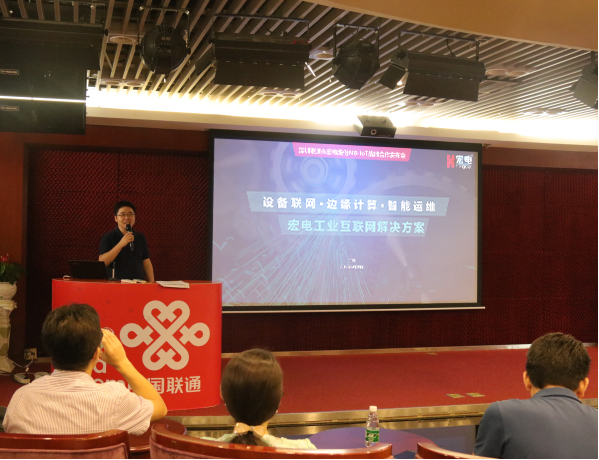 宏電股份銷售總監劉秋勇致辭中分享NB-IOT低功耗廣域網作為近兩年才開始進入大眾視野的物聯網技術,其規模化商用勢必能有力促進物聯網產業的爆發性增長。宏電股份公司在國內最早基于移動通信技術自主研發M2M通信產品并針對行業客戶提供快速定制的應用級解決方案,在這個領域耕耘了20年,擁有融合物聯網、云計算、大數據、邊緣計算、AI等各種信息技術與行業專有技術,提供終端、平臺、應用定制一站式物聯網產品與服務的業務能力,中國聯通作為宏電重要合作伙伴,將基于各自的產品業務優勢共同發力布局物聯網。