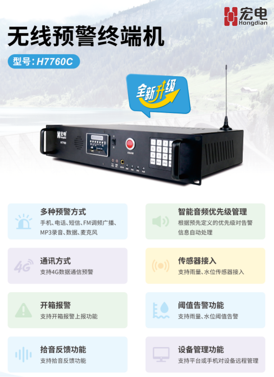 在滑坡隱患點布設宏電自主研發的第三代無線減災預警終端,在災害發生時第一時間執行現場報警的任務,確保隱患點居民及時獲得現場的危情警報。
