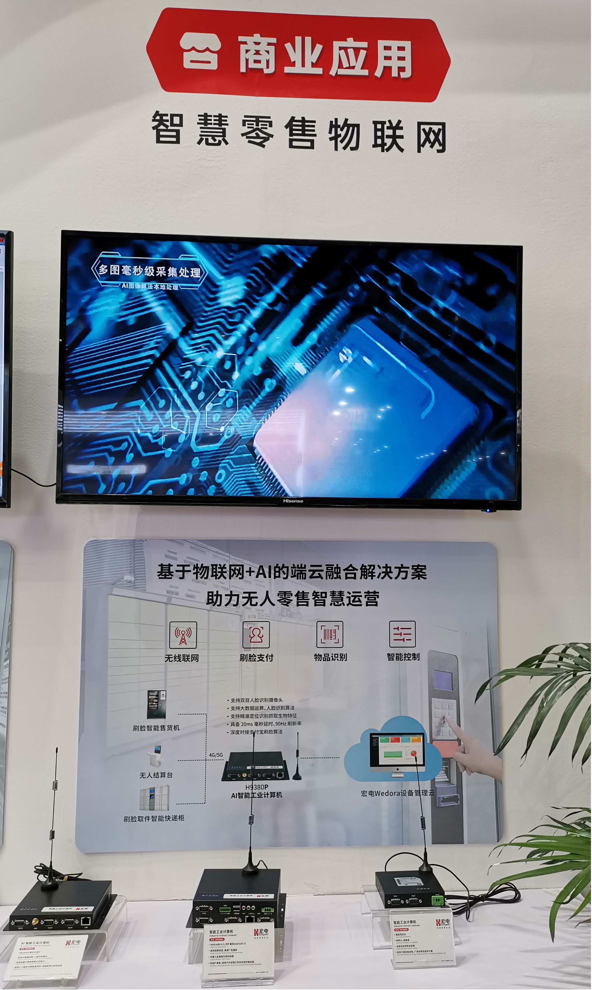 宏電打造一款基 IoT技術與AI技術融合的AI智能工業計算機H9380P,其支持AI人臉識別支付,可適應3D動態視覺方案,打通感知到云端,為各類刷臉支付方案提供強有力的軟硬件支撐,現已成功應用于應用于刷臉智能售貨機、刷臉智能咖啡機、刷臉智能榨汁機、刷臉智能快遞柜、超市無人結算臺、刷臉智能碾米機、刷臉智能垃圾柜等智能終端項目。