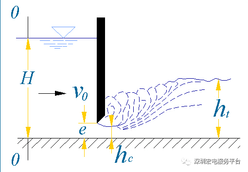 當ht ≤ hc”時,水躍發生在收縮斷面處或下游,為閘孔自由出流。