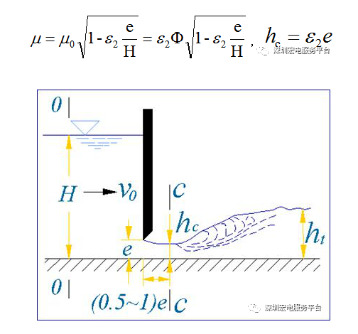 對于平板閘門的閘孔,流量系數μ可按南京水利科學研究所的經驗公式計算: