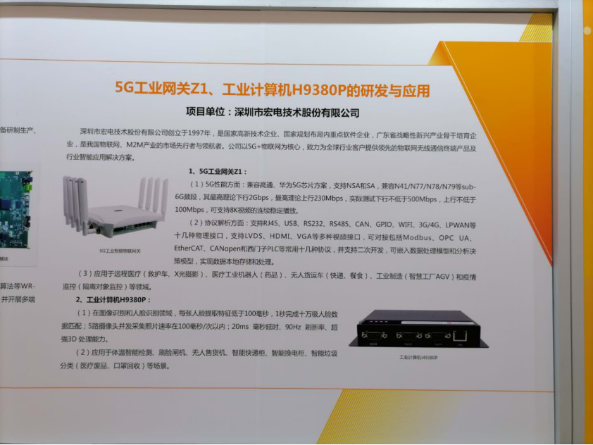 宏電作為全球領先的物聯網無線通信產品提供商及行業智能解決方案服務商,廣東省工業互聯網產業生態供給資源池工業互聯網解決方案商,宏電5G 工業網關Z1和工業計算機H9380P兩款產品憑借出色的產品性能和應用效益,經過多輪專家答辯突圍,成功入選廣東省重點領域研發計劃制造與工業互聯網領域項目,此次作為首批入選企業代表重點展示5G工業物聯網關。