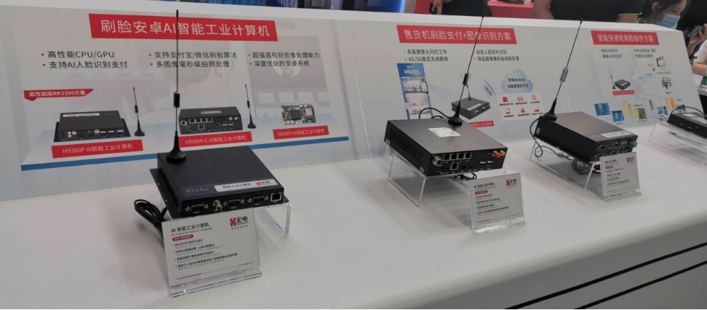 展會現場展示的刷臉支付智能貨柜吸引參觀觀眾紛紛體驗,無需掃碼支付,只需人臉對準刷臉攝像頭,瞬間即可識別綁定的手機號,確認手機號后四位即可開門隨意選擇豐富的商品,關門即可推送結算的商品訂單,這款刷臉智能貨柜搭載宏電AI智能工業計算機H9380P,其采用RK3399六核芯片,能流暢運行支付寶、微信刷臉算法,具備 20ms 毫秒延時、90Hz 刷新率,能夠快速流暢實現人臉檢測、提取、對比,可適應3D動態視覺方案,打通感知到云端,為各類刷臉支付方案提供強有力的軟硬件支撐。目前該產品已成功應用于刷臉智能售貨機、刷臉智能咖啡機、刷臉智能榨汁機、刷臉智能快遞柜、超市無人結算臺、刷臉智能碾米機、刷臉智能垃圾柜等智能終端項目。
