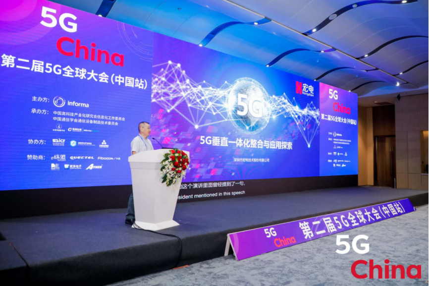 宏電股份董事長、深圳市通信學會副理事長左紹舟先生受邀發表了《5G垂直一體化整合與應用探索》的主題演講,其在談到5G的價值時提到,5G的發展在于行業應用。左總對5G在典型垂直行業應用特點、主要應用場景進行分析,并對今后5G在垂直行業領域應用的深入開展提出建議。其談到5G融入到行業中更 需要具有垂直一體化整合能力的5G龍頭企業帶頭推動。作為深圳本土物聯網創新企業,左總以深圳5G發展情況為例,指出深圳已率先實現5G獨立組網全覆蓋,深圳移動運營商也已在變電站、碼頭、機場、城市管理和智能工廠等多個領域部署了5G行業應用場景,大大的提升了相關部門的運作效率和安全生產能力。