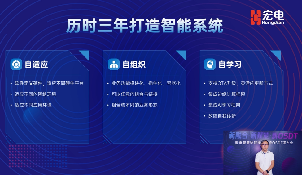 “宏電OSDT物聯網智能操作系統的發布,創新性地提出軟件定義終端的理念,融合了成熟的計算機、物聯網、通信技術,同時集成了新一代邊緣計算、AI智能及容器技術,為智能終端插上了翅膀,是構建智能物聯生態體系的關鍵技術”,大會的最后宏電總工程師郭澤辰指出OSDT操作系統對于賦能行業具有重大意義。宏電作為物聯網自主研發和技術創新企業,未來將持續發揮行業龍頭效應,助推物聯網+新基建快速發展。