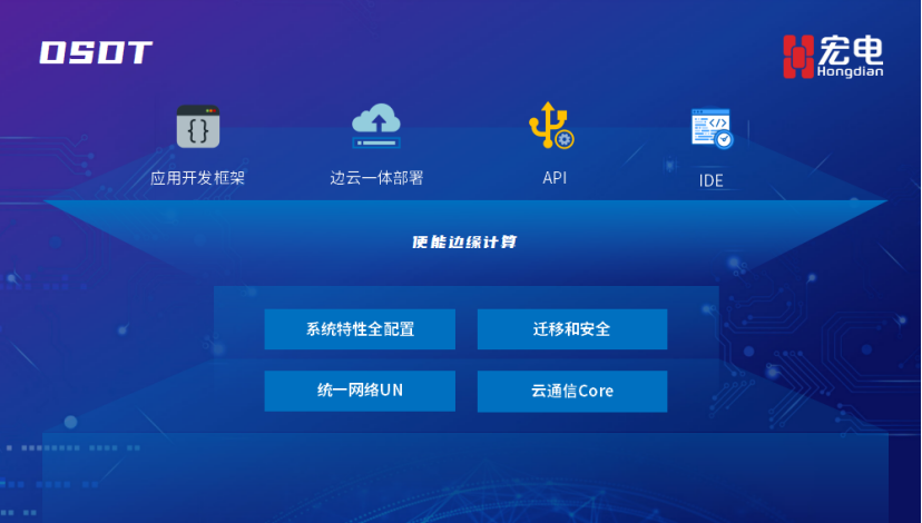 產品發布環節,劉文強首先為大家詮釋了OSDT的含義:Open Software Define Terminal,行業率先提出“開放式軟件定義終端”的理念,而后從OSDT的整體架構介紹其核心能力,OSDT設計有四大基座,分別是“系統特性全配置”、“遷移和安全”、“統一網絡”、“云通信”,在此四大基座上全面使能邊緣計算,使邊緣計算應用快速地開發和部署。目前宏電智慧物聯操作系統OSDT已成功申請到商標和專利保護。