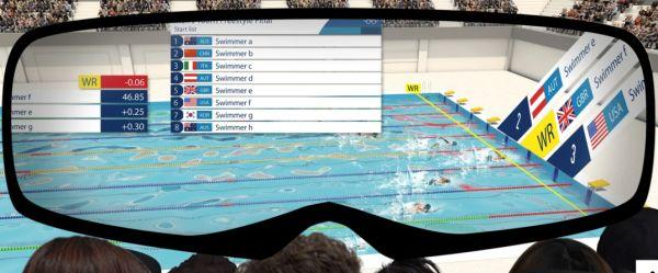 在游泳比賽中,觀眾非常關注運動員的動作和顯示器上的統計數據,聚焦點通常需要在泳池和顯示器之間來回切換觀看體驗較差,而在此次游泳賽事中,觀眾配備支持5G網絡的智能眼鏡,觀眾不僅能看到運動員,還能同時看到比賽結果以及其他數據,給人直觀沉浸式的觀看體驗。