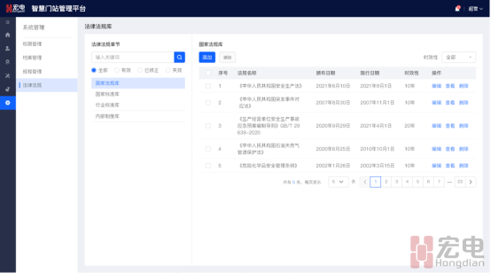 系統管理:包括權限管理、檔案管理、規程管理,并提供場站安全運行相關的國家法律法規、行業技術標準以供運營管理人員學習參考。