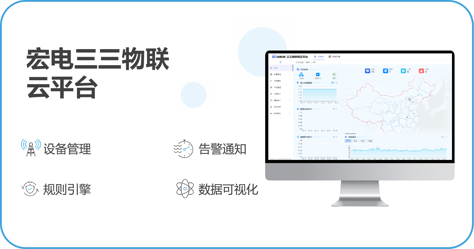 基于宏電三三物聯平臺搭建熱力站遠程監控管理平臺,實現對離散的熱力站集中監控,支持熱力管網設備管理、GIS地圖管理、供熱數據實時展示、換熱站運行數據分析、視頻監控、超標告警、值班日志等多種可視化監控功能,多維度掌握設備的運行情況。提供組織管理和自定義權限功能,可滿足多方用戶同時監控設備數據的復雜監控場景。