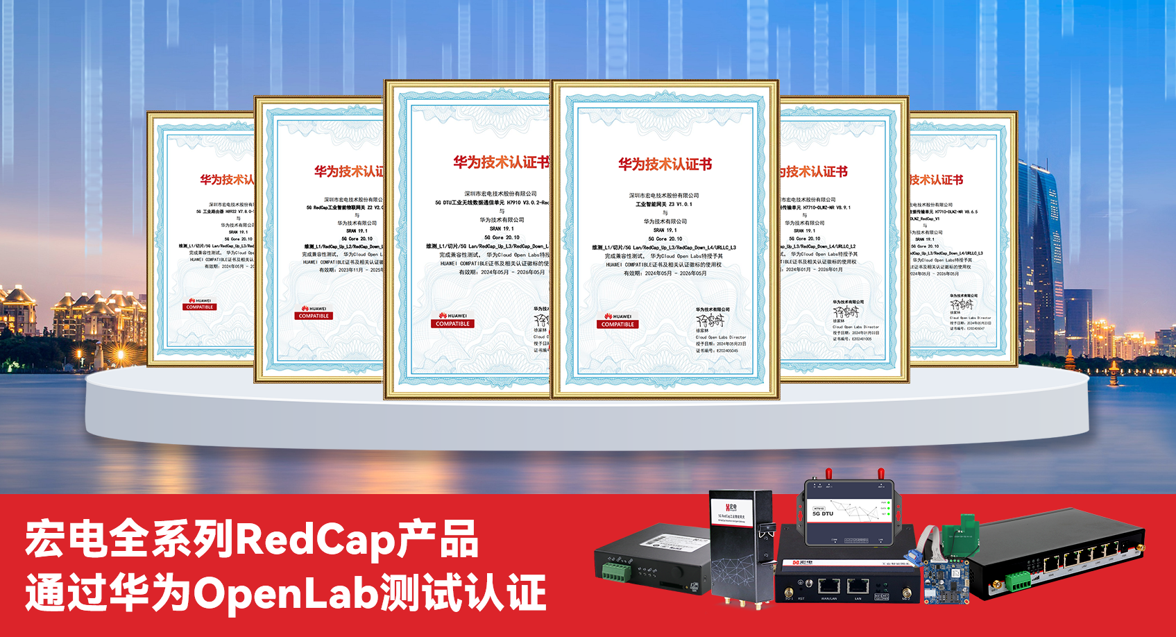 近日,宏電旗下RedCap全系列產品,包含六款關鍵的物聯網通信設備——5G工業智能網關、5G工業路由器、5G工業DTU、5G電力DTU均通過了華為OpenLab實驗室的嚴苛測試與認證!